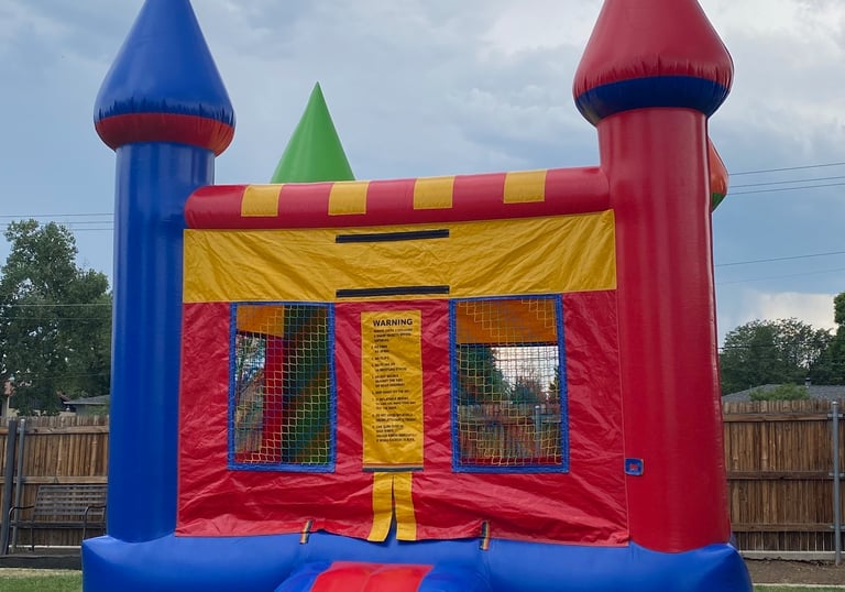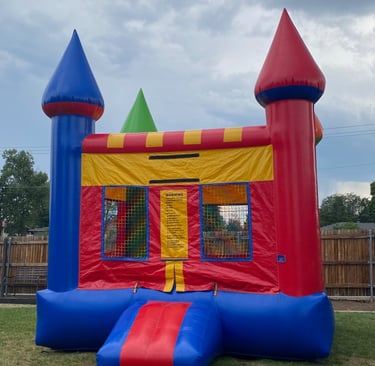 This traditional bounce house measuring 13' x 13' reaching 14' tall. Great for birthdays or small events, allowing 6-10 friends to jump at once! I recommend this unit for all ages.