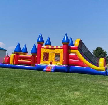 Challenge friends to race through twists, climbs, and tunnels in our inflatable course. Standing 16' tall, 15' wide and 44' long. Kids are amazed by its size!